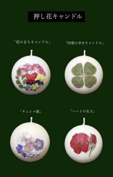 取り扱い商品 | 花のまち恵庭の押し花キャンドル アロマキャンドル 押し花キャンドル アロマワックスサシェ |